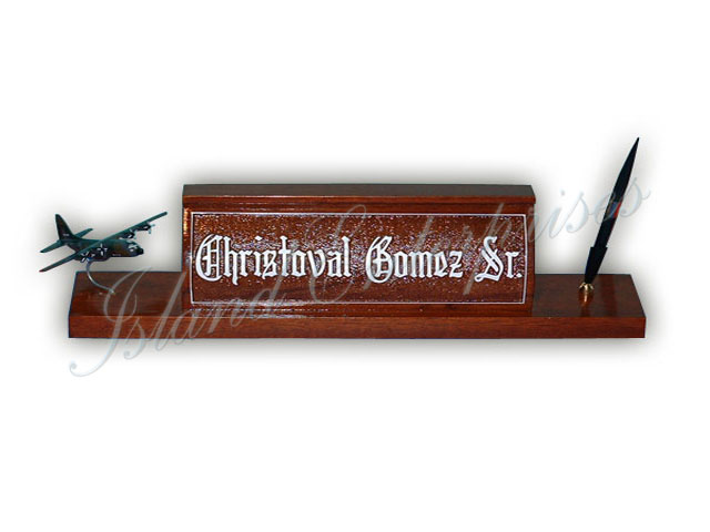 Choose any miniature aircraft you want to display on the left side of the desk plate, also comes with a Pen Holder on the right side.