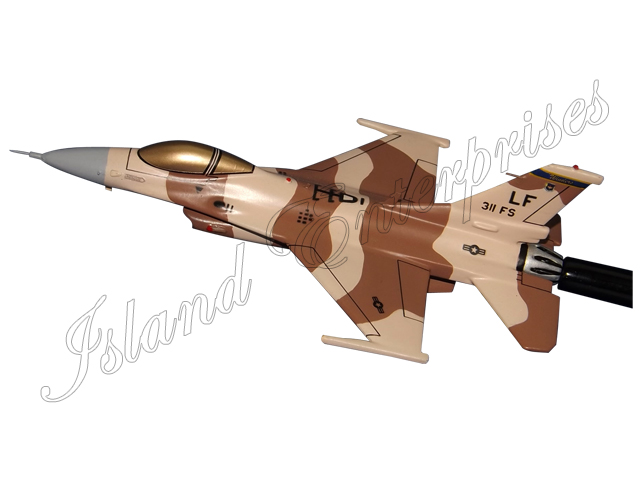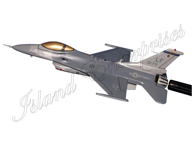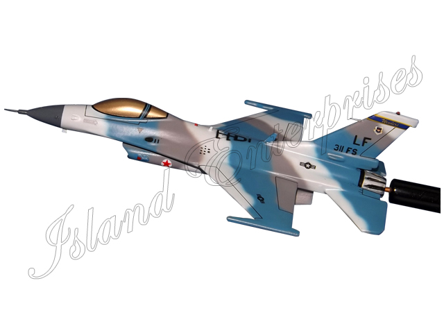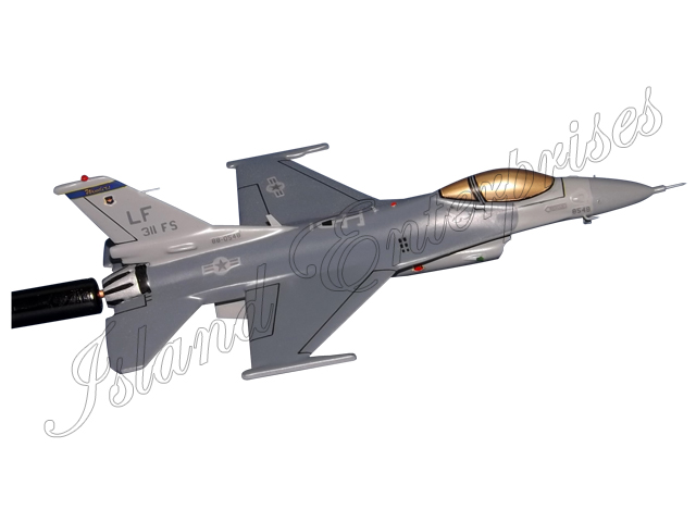 See our beautifully hand carved and hand painted 311st Fighter Squadron F-16C Fighting Falcon Briefing Model mounted to a wooden rod.