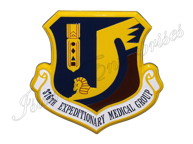 Plaques & Other Wood CarvingsPlaquesWall Mount Cut-Outs and Circular Plaques → 376th Exp Medical Group Cut-out Plaque